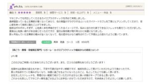 初めての施術だったせいか、1週間程度揉み返しの痛みがあり、少し様子をみています。